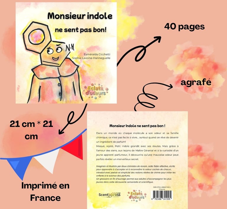 Ecrit par notre fondatrice et co-gérante Esméralda Cicchetti, et illustré par Sophie Lavoine-Hanneguelle, également chimiste, ce conte permet de dédramatiser les odeurs, de comprendre les différences olfactives, source parfois de rejet dans les classes.